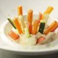 Groente dip met Noord-Afrikaans tintje, door de combinatie van kriander en harissa.
